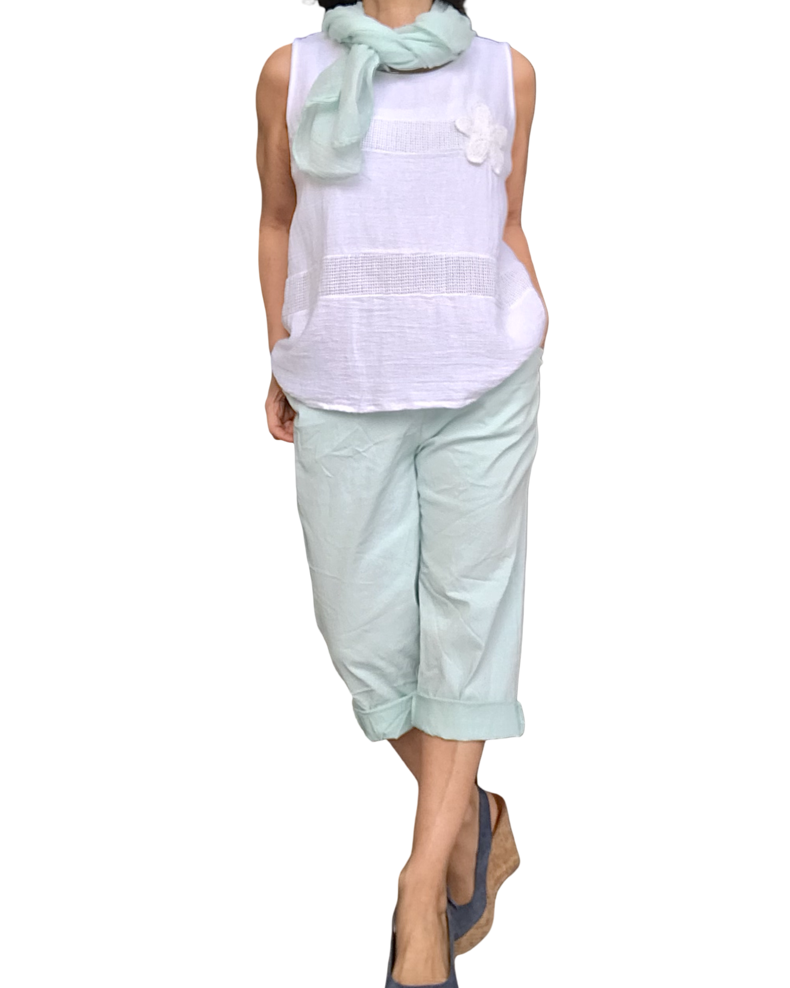 Adoptez ce capri aqua taille élastique avec cordon alliant style et confort 💎 Ajustement parfait à votre silhouette. Pratique et décontracté :
