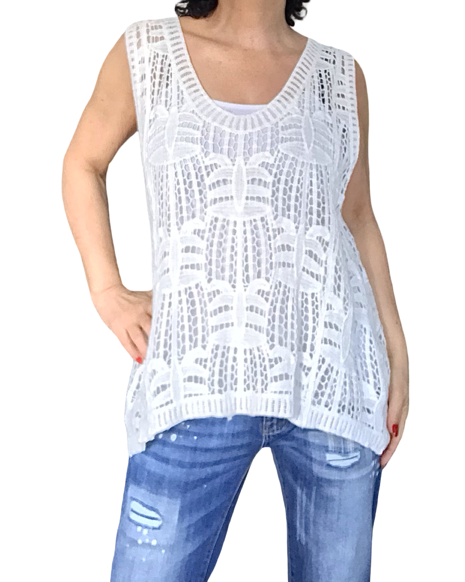 Camisole Crochet Crème Motif Fougère Asymétrique – Description du produit