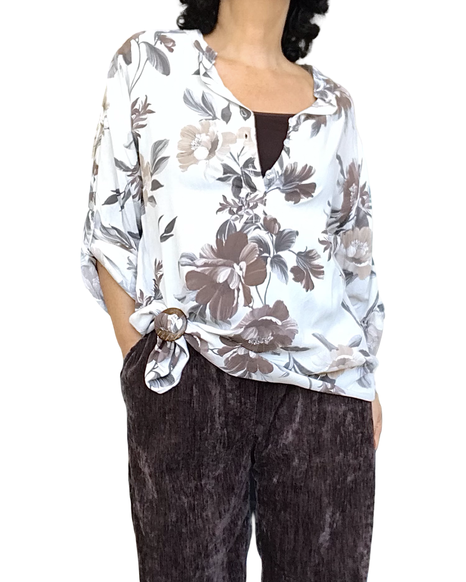 Blouse beige à imprimé floral brun et moka – Description du produit