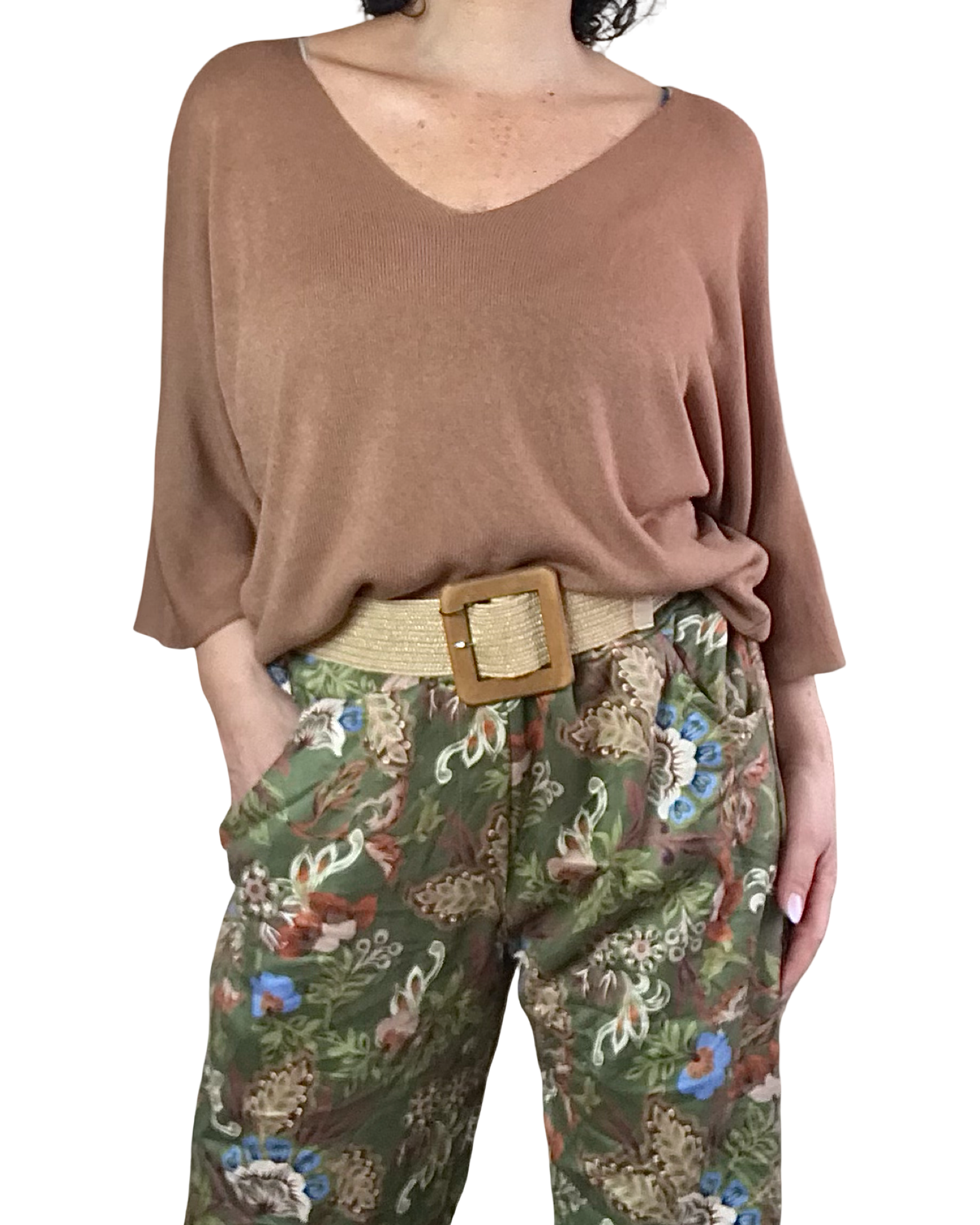 Laissez-vous séduire par ce chandail cognac au col en V élégant et aux manches 3/4 raffinées 🍂 Son tricot ultra-léger en fait une pièce intemporelle qui traverse les saisons avec style. Parfait seul ou en superposition pour multiplier vos possibilités mode :