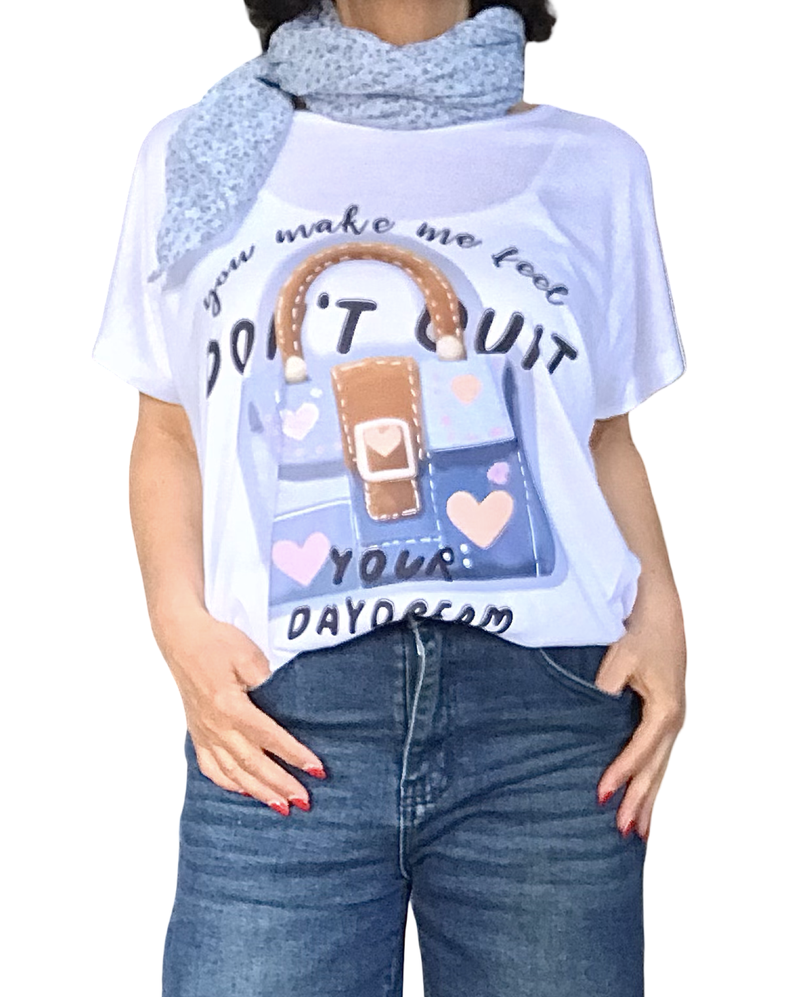 Découvrez notre T-shirt uni blanc manche courte col en V « Don’t quit » Ce vêtement est une base dans votre garde-robe. Conçu dans un tissu respirant, il est idéal pour la belle saison. Sa texture est douce et légère. Il est oversize habille jusqu’à XXL